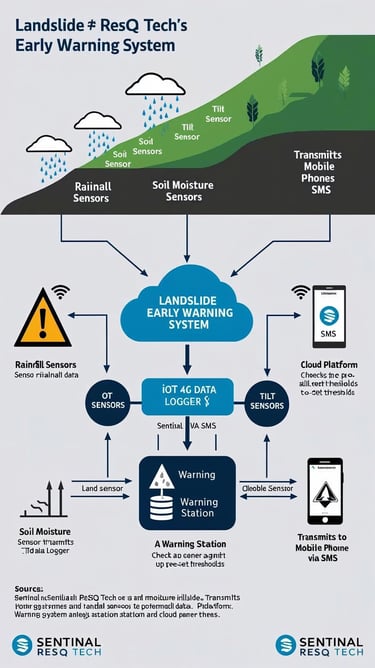 Sentinal membangun sistem peringatan dini tanah longsor berbasis modular yang terdiri dari beberapa komponen utama berikut: